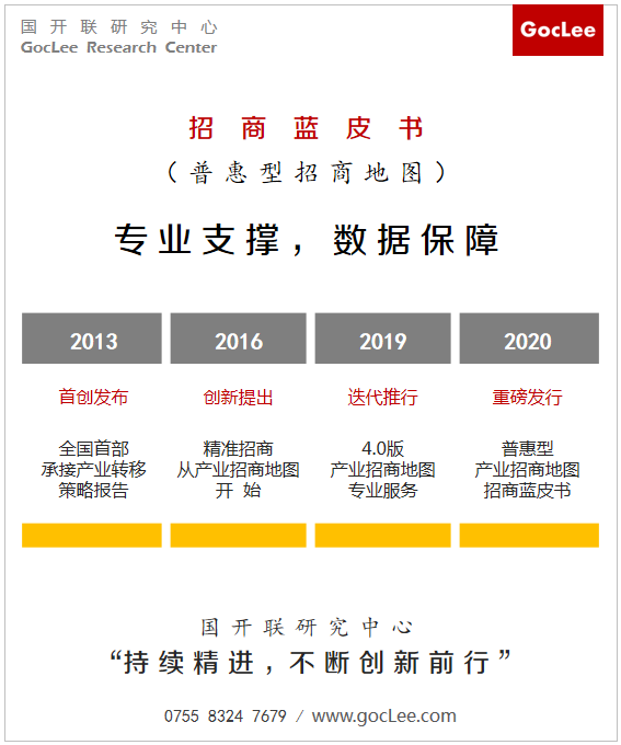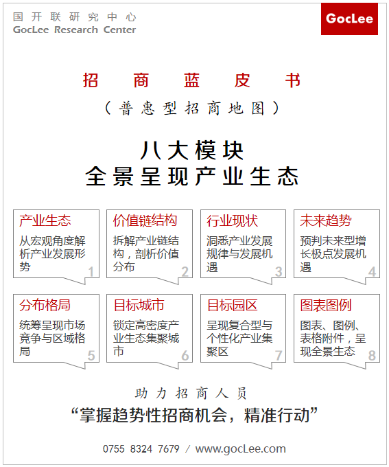 普惠型產(chǎn)業(yè)招商地圖——招商藍(lán)皮書是國(guó)開聯(lián)研究中心依托自身產(chǎn)業(yè)長(zhǎng)期跟蹤研究積累和“4.0版產(chǎn)業(yè)招商地圖”應(yīng)用邏輯,于2020年初首創(chuàng)推出的精準(zhǔn)招商工具書型數(shù)據(jù)產(chǎn)品。