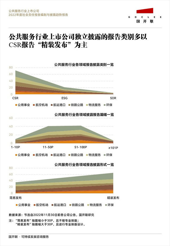 12月5日,國開聯(lián)研究中心發(fā)布《公共服務(wù)行業(yè)2022年度社會(huì)責(zé)任報(bào)告(ESG+CSR+SDR)編制與披露趨勢(shì)報(bào)告》(以下簡(jiǎn)稱《報(bào)告》),就公共服務(wù)行業(yè)六大細(xì)分領(lǐng)域2021年度A股上市公司社會(huì)責(zé)任報(bào)告(CSR)、ESG報(bào)告、可持續(xù)發(fā)展報(bào)告(SDR)披露數(shù)據(jù)進(jìn)行統(tǒng)計(jì)剖析,并基于垂直行業(yè)生態(tài)、結(jié)合當(dāng)前形勢(shì)對(duì)2022年度公共服務(wù)行業(yè)社會(huì)責(zé)任報(bào)告編制與披露趨勢(shì)進(jìn)行展望研判。