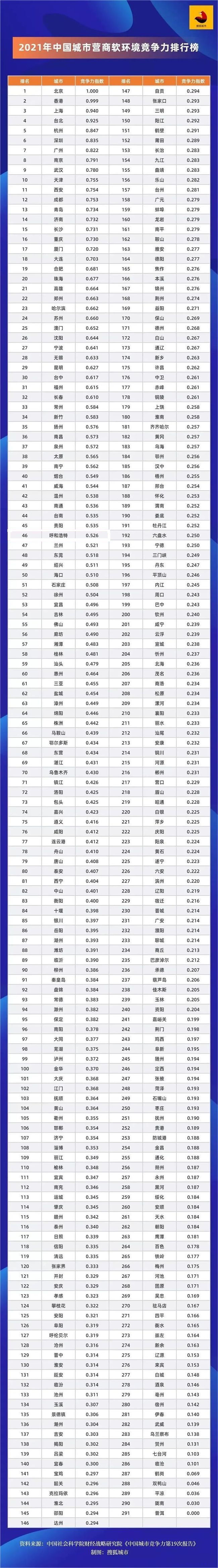 附:2021年中國(guó)城市營(yíng)商軟環(huán)境競(jìng)爭(zhēng)力排行榜
