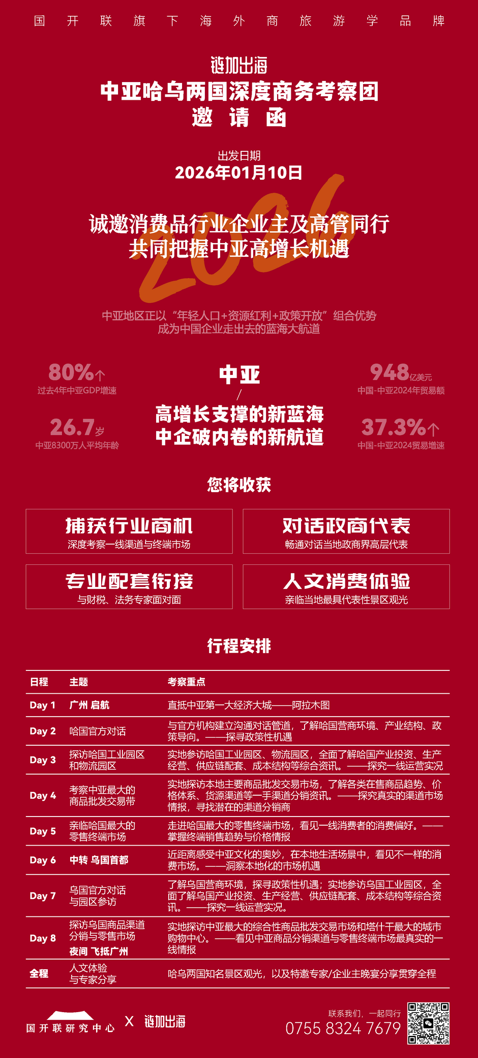 ——>2026年01月中亞商務(wù)考察團(tuán)招募公告【邀請函】 |