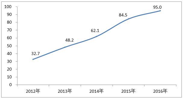 圖表2 智能電視2012-2016年滲透率