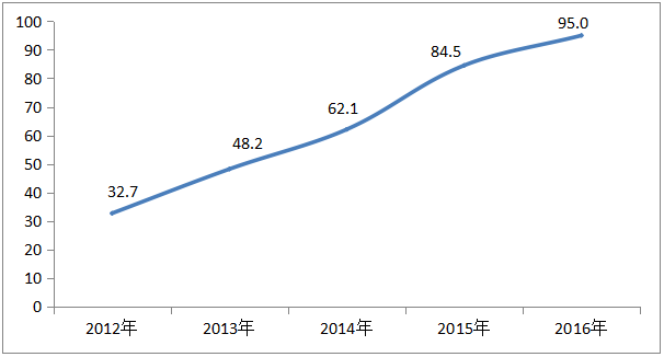 2012年,智能電視滲透率僅為32.7%。到2015年底,智能電視已逐漸普及,絕大部份在市場上銷售的電視均為智能電視。預(yù)估到2016年電視智能化會全面普及,滲透率將達(dá)95%或以上。