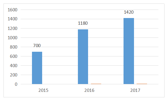 圖表4 2015-2017 年新增造雪機(jī)數(shù)量統(tǒng)計(jì)
