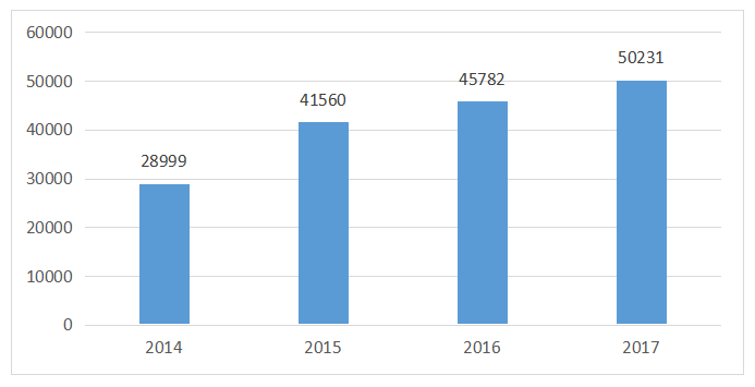 圖表5 2014-2017 年新增雙板進(jìn)口數(shù)量