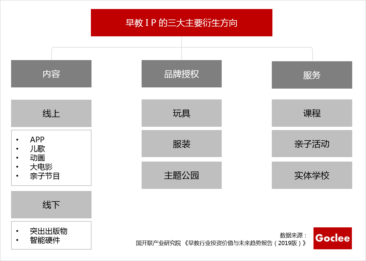 國開聯(lián)產(chǎn)業(yè)研究院發(fā)布的《早教行業(yè)投資價值與未來趨勢報告(2019版)》顯示,預(yù)計到2020年我國早教市場規(guī)模將達(dá)3000億左右。然而,因早教行業(yè)涉足領(lǐng)域廣泛、市場服務(wù)與產(chǎn)品質(zhì)量良莠不齊、寡頭眾多等因素,行業(yè)新進(jìn)入者面臨挑戰(zhàn)極大?!霸缃蘄P+衍生品”模式將把競爭者帶入到一個新的IP戰(zhàn)場,早教行業(yè)也因此或?qū)㈤_啟新的篇章。