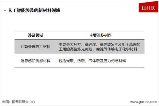 人工智能已成為引領(lǐng)新一代技術(shù)變革的顛覆性技術(shù),是各國布局的焦點(diǎn)。新材料在人工智能應(yīng)用,主要在計(jì)算處理和信息感知兩個(gè)過程,包括計(jì)算處理用芯片材料和信息感知的傳感材料。