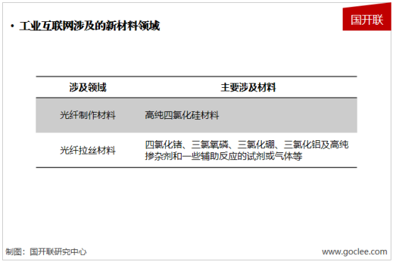 工業(yè)互聯(lián)網(wǎng)是智能制造發(fā)展的基礎(chǔ),其運(yùn)行的關(guān)鍵是數(shù)據(jù)的流動(dòng),通信是基礎(chǔ),其主要的需求材料是光纖傳輸材料,主要包括光纖制造、光纖拉絲等領(lǐng)域的硅材料和輔助反應(yīng)氣體材料。