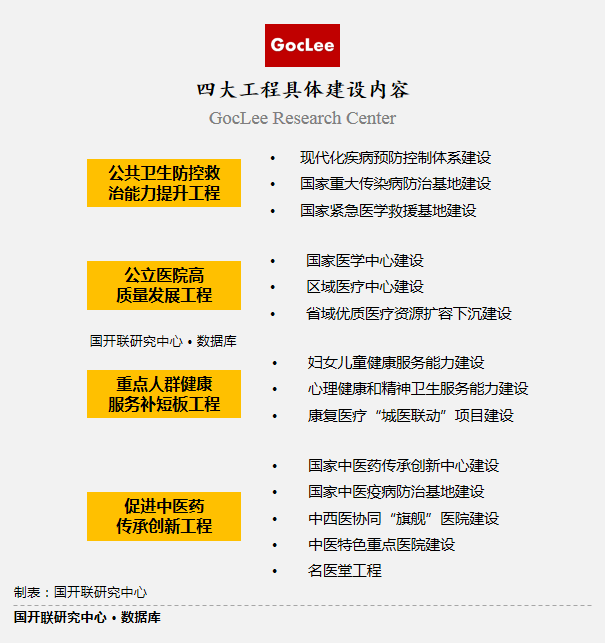 《方案》從公共衛(wèi)生防控救治能力提升工程、公立醫(yī)院高質量發(fā)展工程、重點人群健康服務補短板工程、促進中醫(yī)藥傳承創(chuàng)新工程四個方面提出11條建設目標,計劃到2025年基本建成優(yōu)質高效整合型醫(yī)療衛(wèi)生服務體系。