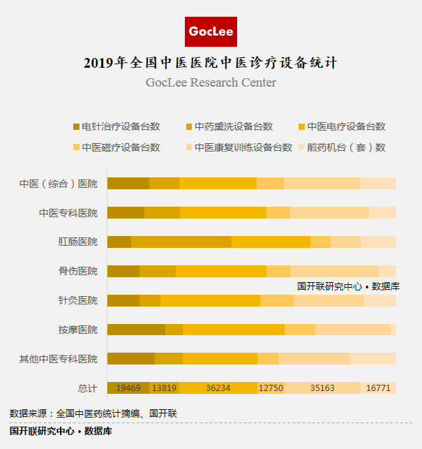先進的中醫(yī)診斷設備是新形勢發(fā)展的需要。據國開聯(lián)研究報告顯示,我國中醫(yī)診斷設備數量現已覆蓋全國各大中醫(yī)醫(yī)院。中醫(yī)電針治療設備、中藥熏洗設備、中醫(yī)電療設備、中醫(yī)磁療設備、中醫(yī)康復訓練設備及煎藥機等中醫(yī)診斷設備在2019年全國范圍內均已有1萬臺以上并均呈現增長態(tài)勢,能夠滿足人民群眾日益增長的中醫(yī)服務需求。