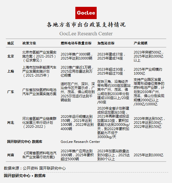 從這些政策的導(dǎo)向來看,主要就是聚焦在氫燃料汽車(主要為城市公交大巴車和物流車)的推廣、燃料電池核心技術(shù)研發(fā)、加氫基礎(chǔ)設(shè)施建設(shè)以及氫能示范城區(qū)的打造上。當(dāng)然,從政策落實情況來看,各省市之間也是積極結(jié)合之間的地域優(yōu)勢,例如廣東省,其明確提出以產(chǎn)業(yè)園區(qū)的形式推動燃料電池產(chǎn)業(yè)的發(fā)展,同時特別強(qiáng)調(diào)要支持傳統(tǒng)能源重鎮(zhèn)茂名發(fā)展以氫源供應(yīng)、氫能儲運(yùn)以及設(shè)備等為特色的氫能產(chǎn)業(yè),形成錯位競爭格局。