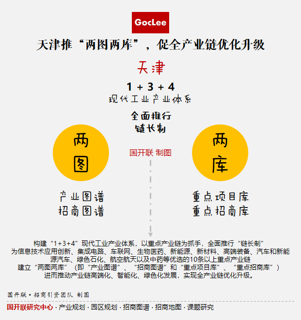 2021年7月,天津出臺《天津市制造業(yè)高質(zhì)量發(fā)展“十四五”規(guī)劃》,提出圍繞構(gòu)建“1+3+4”現(xiàn)代工業(yè)產(chǎn)業(yè)體系,以重點產(chǎn)業(yè)鏈為抓手,全面推行“鏈長制”,為信息技術(shù)應(yīng)用創(chuàng)新、集成電路、車聯(lián)網(wǎng)、生物醫(yī)藥、新能源、新材料、高端裝備、汽車和新能源汽車、綠色石化、航空航天以及中藥等優(yōu)選的10條以上重點產(chǎn)業(yè)鏈,建立“兩圖兩庫”(即“產(chǎn)業(yè)圖譜”、“招商圖譜”和“重點項目庫”、“重點招商庫”)進而推動產(chǎn)業(yè)鏈高端化、智能化、綠色化發(fā)展,實現(xiàn)全產(chǎn)業(yè)鏈優(yōu)化升級。
