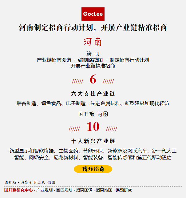 2021年5月,河南出臺《河南省制造業(yè)頭雁企業(yè)培育行動方案(2021-2025)》,提出到2025年,力爭在“556”制造業(yè)體系每個重點領(lǐng)域認(rèn)定3-5家頭雁企業(yè),形成十百千億級優(yōu)質(zhì)企業(yè)雁陣。要求各地強化招商引資,按照重點產(chǎn)業(yè)鏈招商圖譜,圍繞6個戰(zhàn)略支柱產(chǎn)業(yè)鏈、10大新興產(chǎn)業(yè)鏈,針對關(guān)鍵環(huán)節(jié)、空白環(huán)節(jié),繪制產(chǎn)業(yè)鏈招商圖譜,編制路線圖,制定招商行動計劃,開展產(chǎn)業(yè)鏈精準(zhǔn)招商。