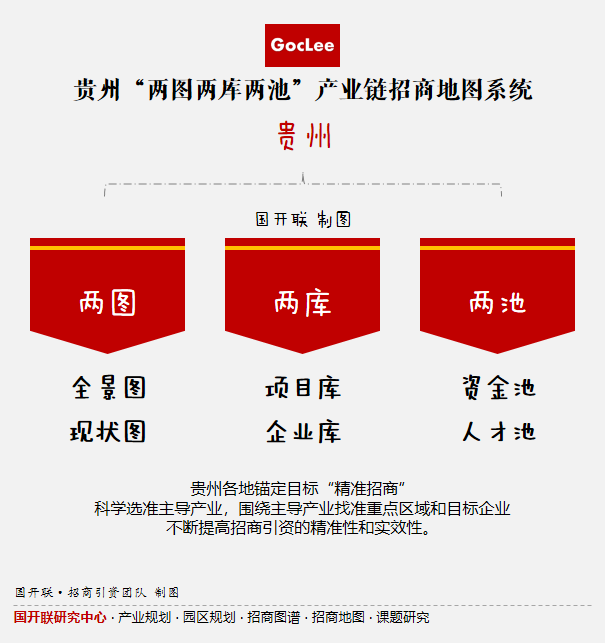 貴州“兩庫、兩圖、兩池”產(chǎn)業(yè)鏈招商地圖系統(tǒng),具體為:兩圖——全景圖、現(xiàn)狀圖;兩庫——項目庫、企業(yè)庫;兩池——資金池、人才池。