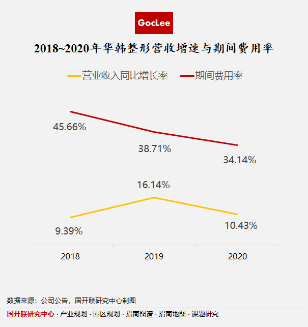財報數(shù)據(jù)顯示,2018年~2020年華韓整形營收增速從9.39%增至10.43%,而期間費用率則從45.66%降至34.14%,背后體現(xiàn)了“大中臺、小前端”模式對公司經(jīng)營的正面效應(yīng)。