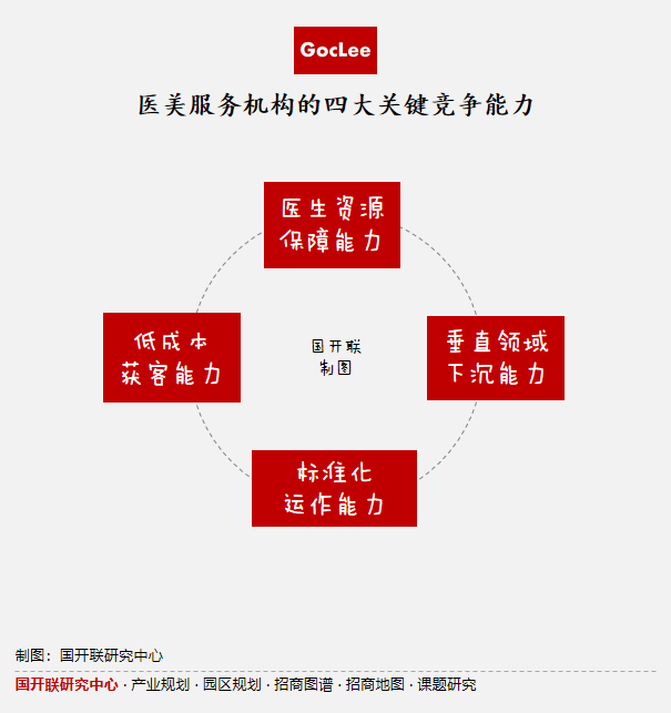 顏值經(jīng)濟大潮下, 醫(yī)療美容已成為醫(yī)療產(chǎn)業(yè)的重要分支之一,行業(yè)高速增長、資本追逐的大背景下,如何贏得市場,實現(xiàn)可持續(xù)經(jīng)營發(fā)展,關(guān)鍵在于醫(yī)生資源保障能力、低成本獲客能力、標(biāo)準(zhǔn)化運作能力以及垂直領(lǐng)域下沉能力等四個方面關(guān)鍵競爭能力。