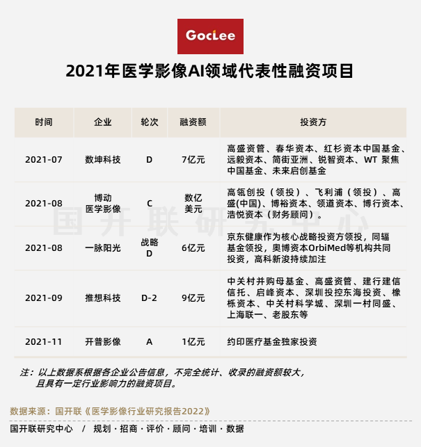 2021年度醫(yī)學(xué)影像AI領(lǐng)域代表性重大融資項(xiàng)目一覽: