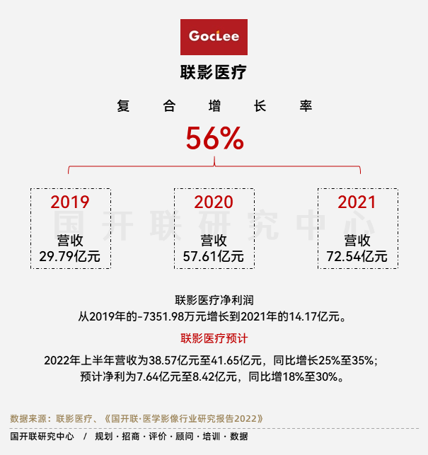 聯(lián)影醫(yī)療,致力于為全球客戶提供高性能醫(yī)學(xué)影像設(shè)備、放射治療產(chǎn)品、生命科學(xué)儀器及醫(yī)療數(shù)字化、智能化解決方案。 聯(lián)影醫(yī)療,2019-2021年?duì)I收復(fù)合增長(zhǎng)率高達(dá)56.03%。