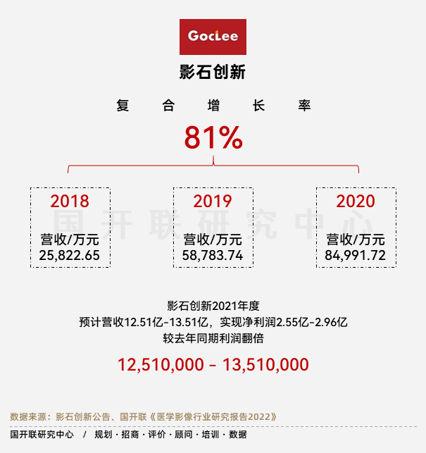 國(guó)開聯(lián)《醫(yī)學(xué)影像行業(yè)研究報(bào)告2022》數(shù)據(jù)顯示,聯(lián)影醫(yī)療、鷹瞳科技和影石創(chuàng)新過(guò)去3年來(lái)均實(shí)現(xiàn)了營(yíng)收、利潤(rùn)的高增長(zhǎng)。
