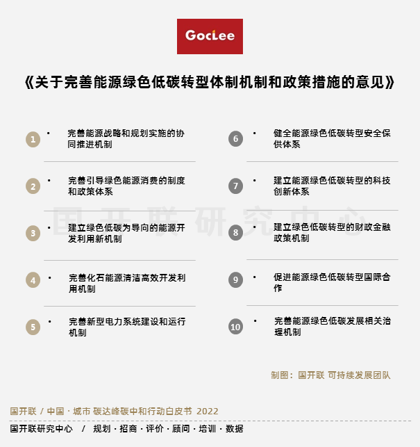 2022年2月13日,國家發(fā)改委、能源局發(fā)布了《關(guān)于完善能源綠色低碳轉(zhuǎn)型體制機(jī)制和政策措施的意見》,該文件為《意見》“N+1”系列文件中能源領(lǐng)域的細(xì)化文件,旨在深入貫徹落實(shí)《意見》及《行動(dòng)方案》,以解決能源綠色低碳發(fā)展過程中存在的體制機(jī)制、政策體系、治理方式等困難和挑戰(zhàn),適應(yīng)新形勢下推進(jìn)能源綠色低碳轉(zhuǎn)型的工作要求,推動(dòng)形成能源低碳轉(zhuǎn)型的新局面。