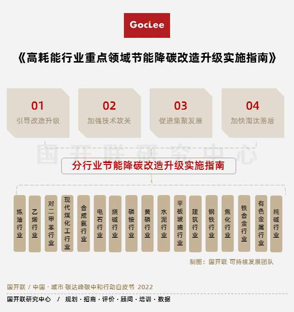 2022年2月,國家發(fā)改委發(fā)布了《高耗能行業(yè)重點(diǎn)領(lǐng)域節(jié)能降碳改造升級(jí)實(shí)施指南(2022年版)》,提到了4方面的實(shí)施要求,并指導(dǎo)17個(gè)高耗能消耗和碳排放行業(yè)進(jìn)行節(jié)能改造,指導(dǎo)17個(gè)高耗能消耗和碳排放行業(yè)進(jìn)行節(jié)能改造。