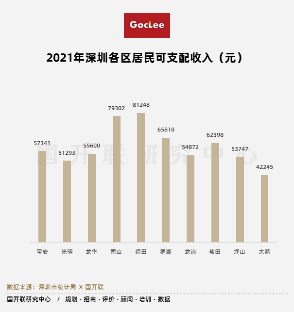 從居民收入水平,可將深圳人群分為三大梯度,第一梯度為福田、南山,第二梯度為羅湖、鹽田、寶安、龍華、龍崗、坪山和光明,第三梯隊(duì)為大鵬。