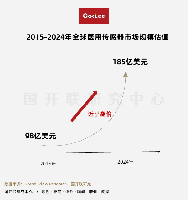 隨著科技進(jìn)步,醫(yī)療器械未來是否能真正實(shí)現(xiàn)智能化,關(guān)鍵在于底層組件—— 型醫(yī)用傳感器的技術(shù)發(fā)展情況。根據(jù)市場研究公司Grand View Research研究顯示,全球醫(yī)用傳感器市場規(guī)模將由2015年的98億美元增加到2024年185億美元。