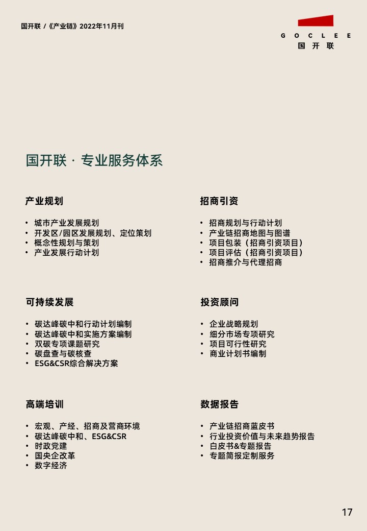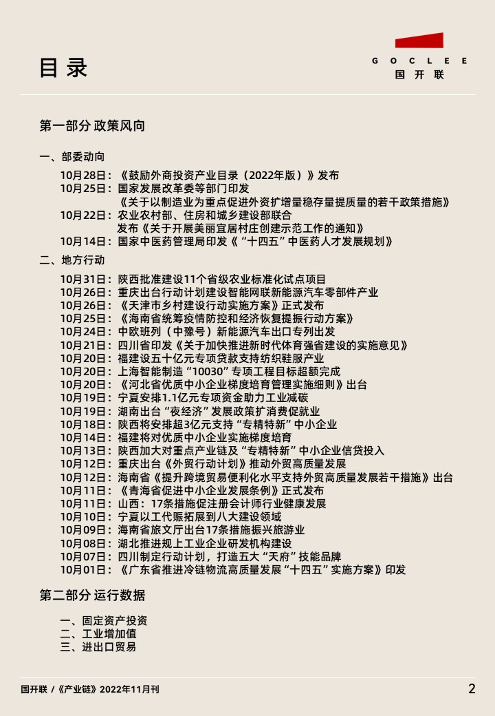 附:國開聯(lián) 全國產(chǎn)業(yè)鏈經(jīng)濟政策與運行數(shù)據(jù)洞察期刊 ——《產(chǎn)業(yè)鏈 》2022年11月刊