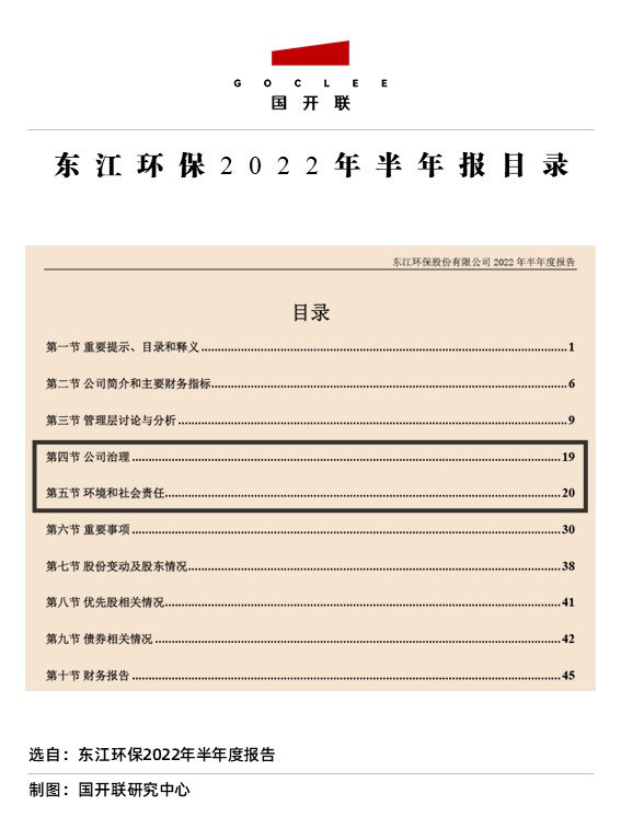 2022年半年度報告中,東江環(huán)保也專門設立了獨立章節(jié)來陳述企業(yè)ESG實踐之道,即“第四節(jié)”和“第五節(jié)”。