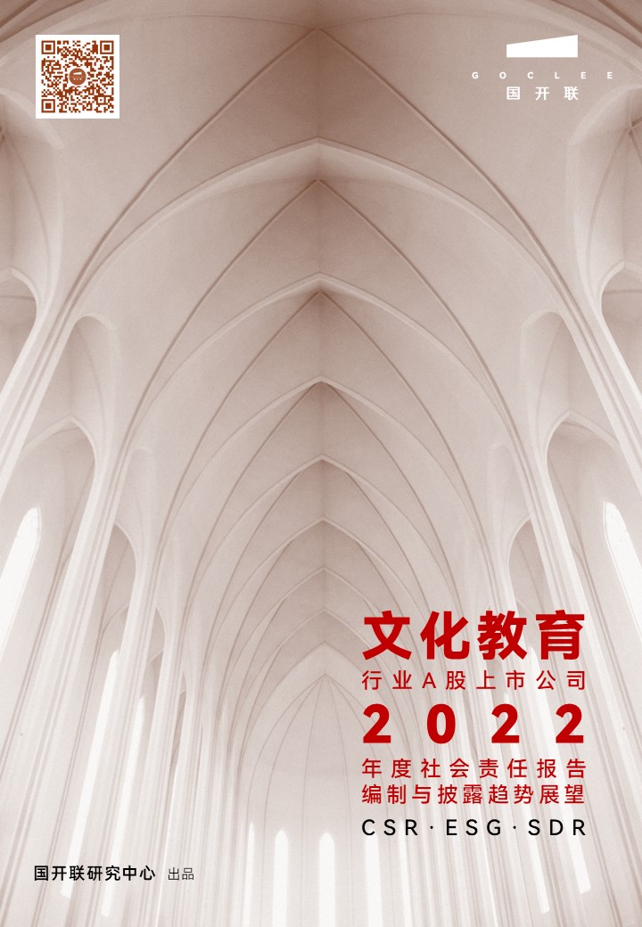 12月27日,國開聯(lián)研究中心發(fā)布《文化教育行業(yè)A股上市公司2022年度社會(huì)責(zé)任報(bào)告編制與披露趨勢(shì)展望報(bào)告》(以下簡(jiǎn)稱《報(bào)告》),對(duì)我國A股文化教育行業(yè)上市公司2021年度社會(huì)責(zé)任報(bào)告(含ESG報(bào)告、可持續(xù)發(fā)展報(bào)告SDR)披露情況及特征進(jìn)行了系統(tǒng)剖析,同時(shí)結(jié)合當(dāng)前形勢(shì),對(duì)我國A股文化教育行業(yè)上市公司2022年度報(bào)告編制與披露趨勢(shì)進(jìn)行了展望和預(yù)判。
